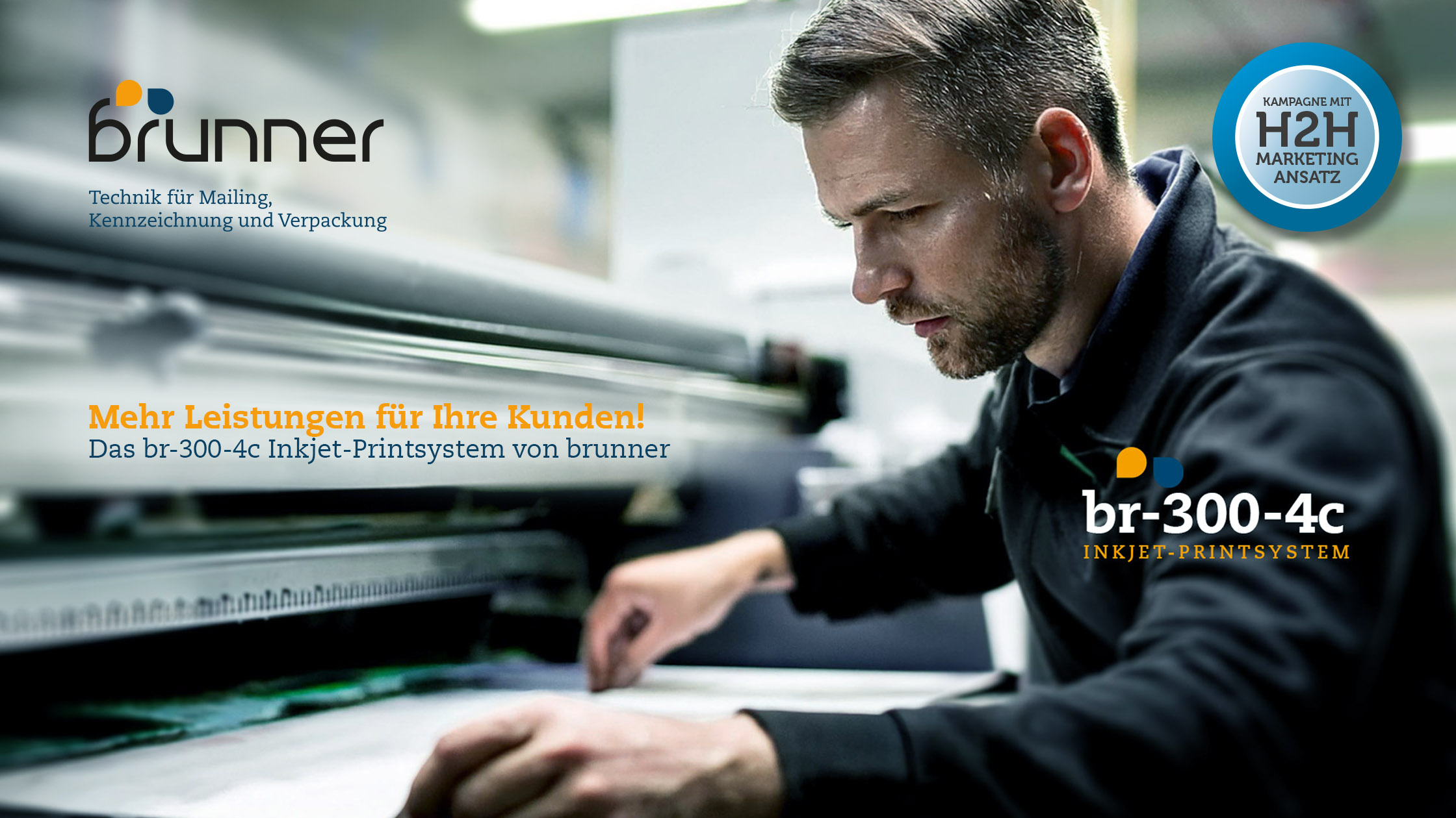 Einführungskampagne für das neue br-300-4c Inkjet-Printsystem von brunner.